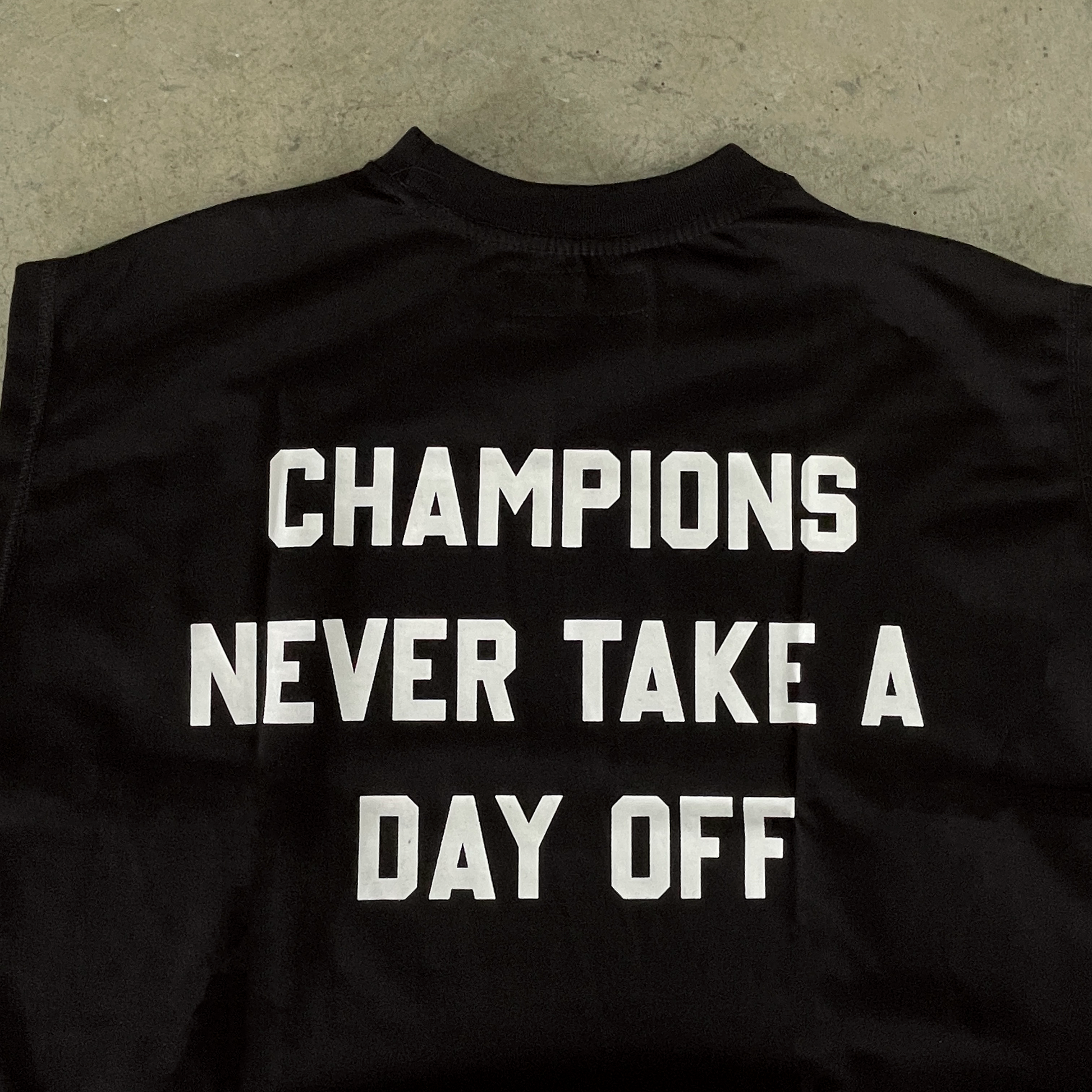 Rest later. The NO DAYS OFF Boxy Sleeveless Tee is for the relentless. Featuring a boxy, oversized cut and dropped shoulders, this piece blends streetwear attitude with performance-ready comfort. It’s made to move with you—on grind days, gym days, and every damn day in between.